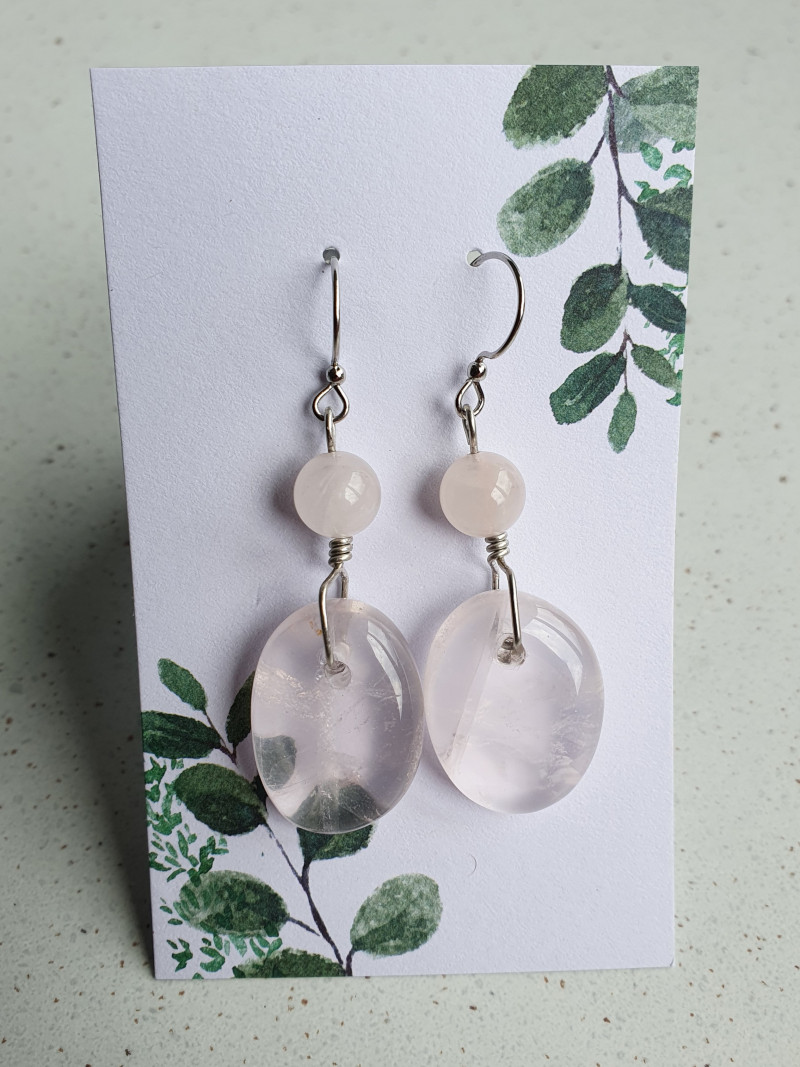 Rose quartz earrings with rose quartz beads. Made with nickel free ear wires and tarnish resistant silver findings.