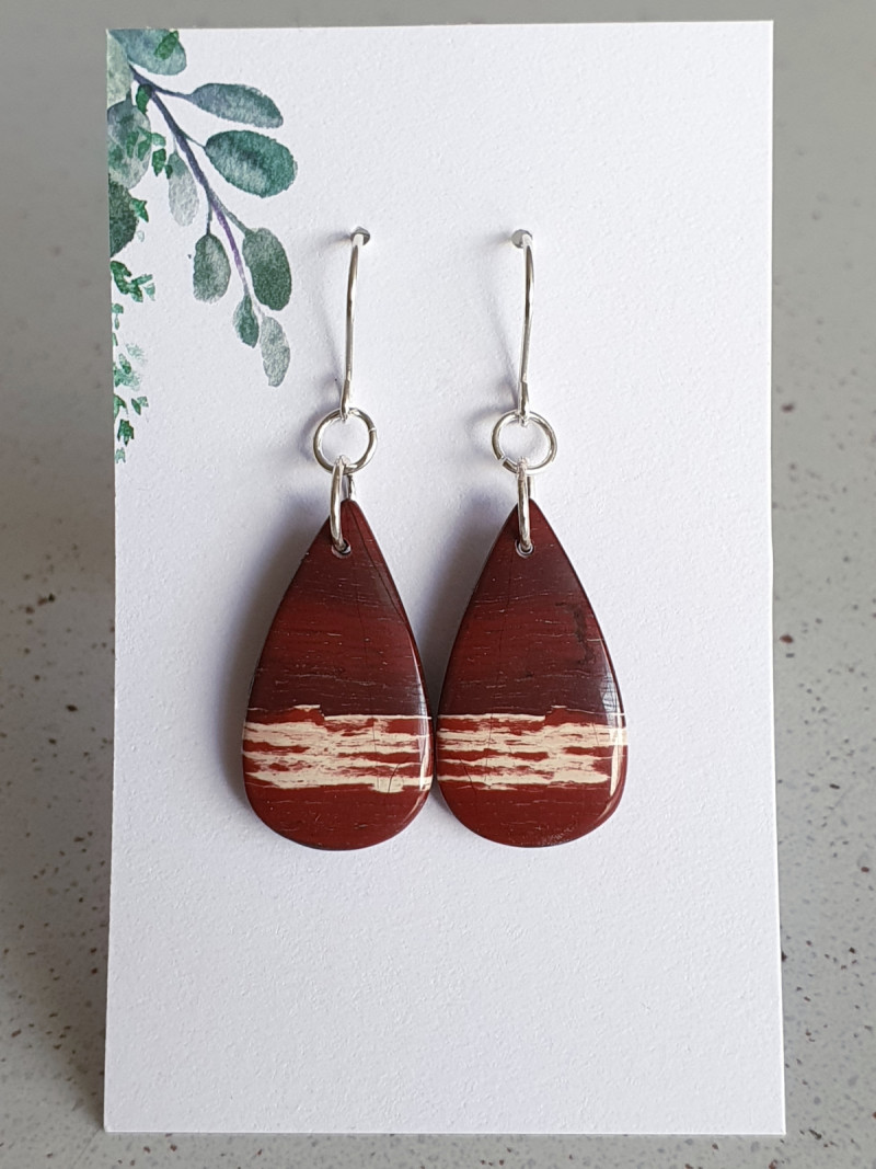 One of a kind matched pair of Snakeskin Jasper crystal earrings. Made with Stirling Silver ear wires and findings.
