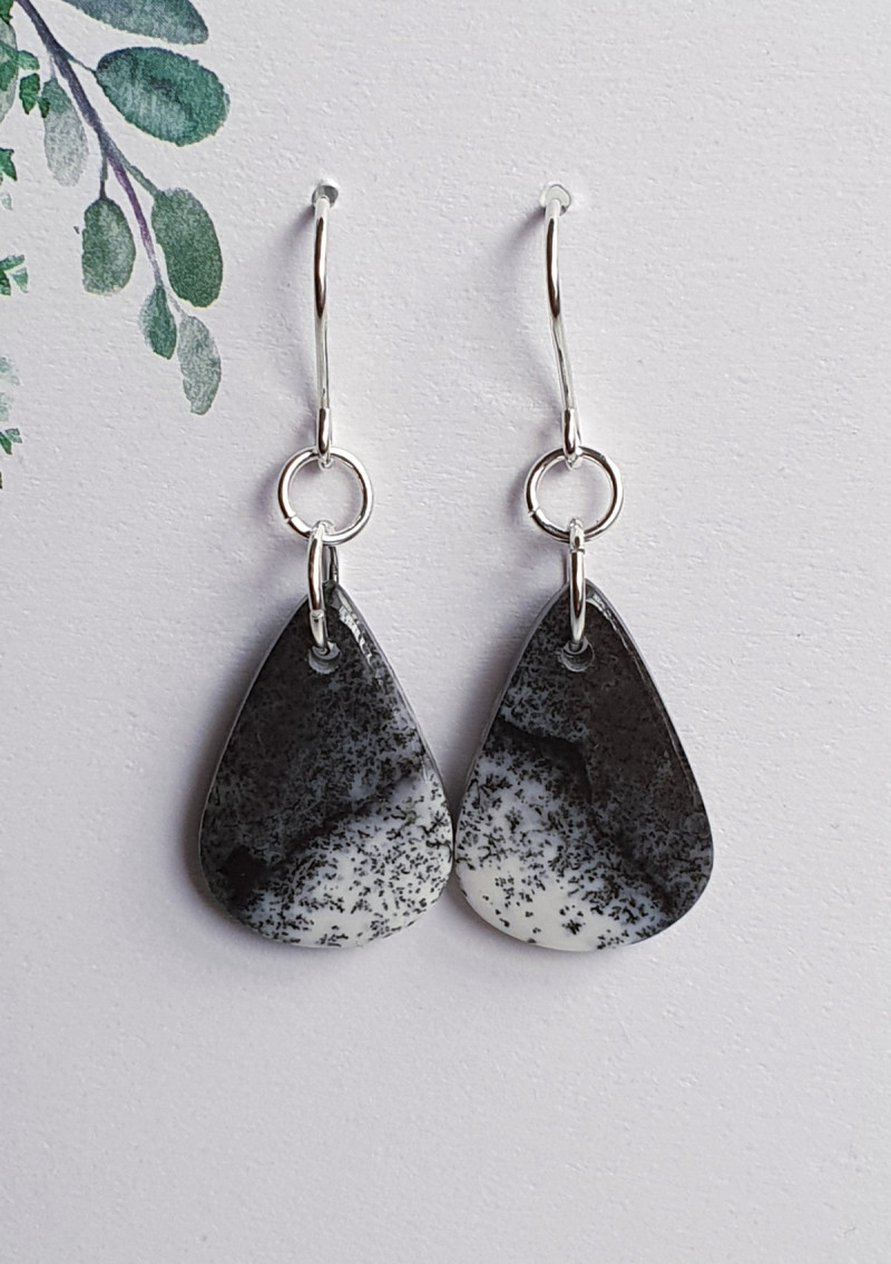 Matched pair of Dendritic Opal crystal earrings. Made with Stirling Silver ear wires and findings.