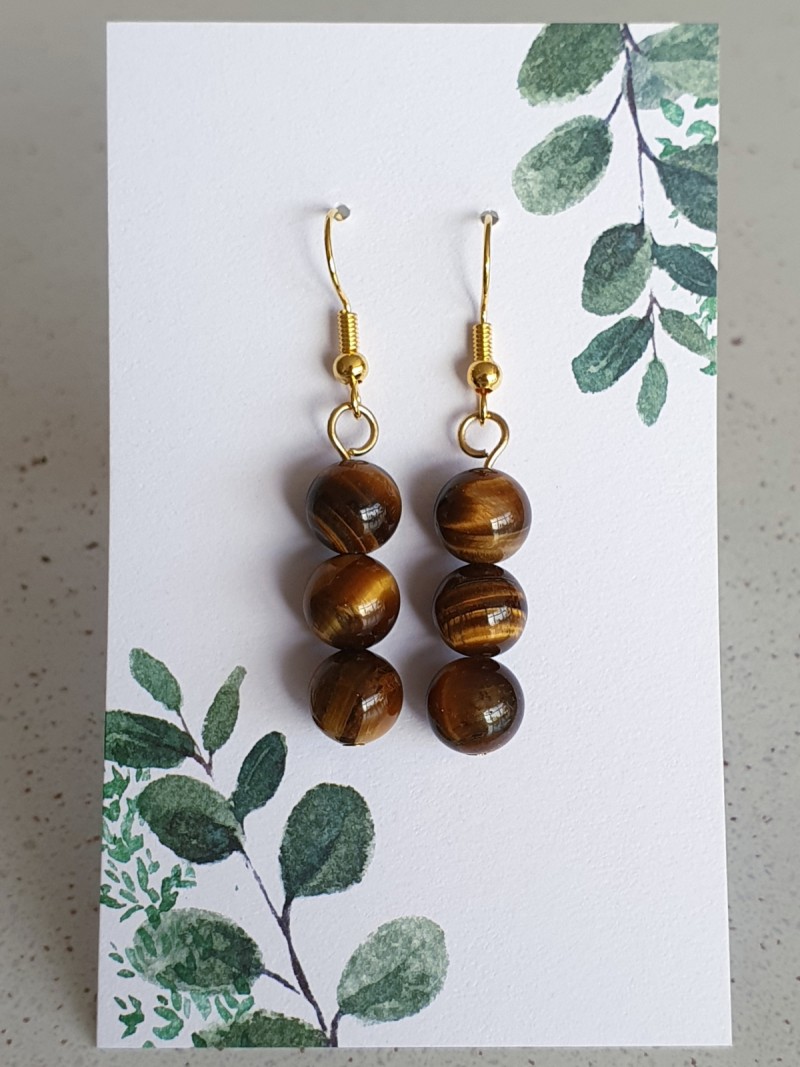 Tiger's Eye crystal bead earrings. Made with gold plated ear wires and findings.