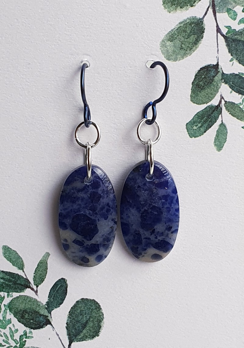 Matched pair of Sodalite crystal earrings. Made with blue Niobium ear wires and Stirling Silver findings.