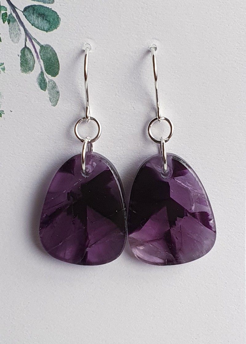 Matched pair of Trapiche Amethyst crystal earrings. Made with Stirling Silver ear wires and findings.